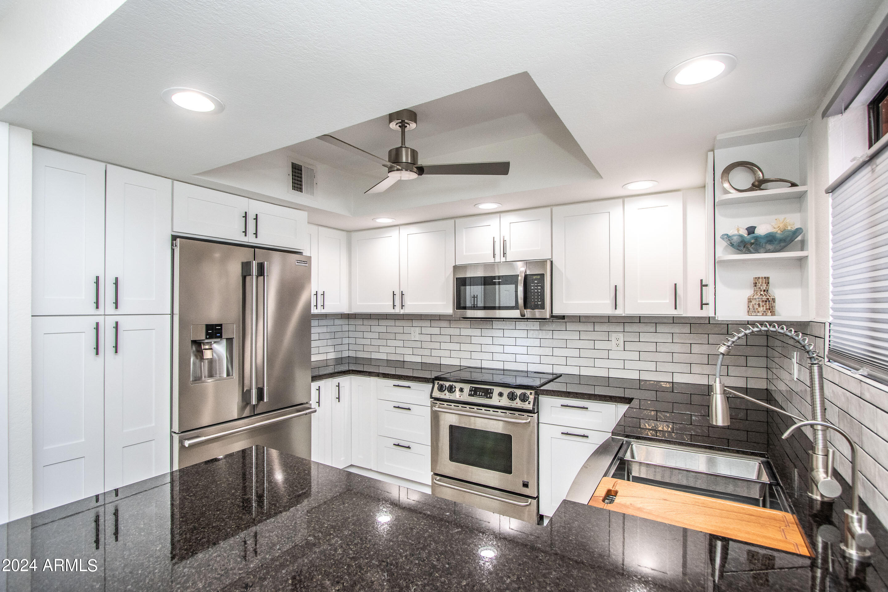 Great remodeled one! Fabulous location for a ground floor unit, centrally located in building 5., Recently updated w/upgrades . Wood looking ceramic tile throughout. Views of 1 of the 5 pools in the complex from patio adds to the resort-style retreat experience. Stone Creek Golf course, clubhouse pool, fitness center & lovely Cactus Garden only a few steps away.. This condo would be a perfect full or part-time residence or investment property. Covered, assigned parking space is just steps away from your door. Residents enjoy impeccably kept grounds & direct gate access adjacent to golf course & walking, biking trails. Anasazi Village amenities include five resort pools, each w/its own spa, a clubhouse w/party room, a billiard & card room, plus a well-equipped fitness & business center. Anasazi Village giving the feel of an oasis in the middle of town. You can find almost everything you need close by. A lot of restaurants close by, library, Walmart, Costco, Target, REI, Home Goods, TJ Maxx and Aldis very short distance. Phase One of the new lifestyle center, "PV, Reimagined" is close by. See attached Documents for pet policy, Community Map, floor plan, community Rules & an example of a Monthly Activity Calendar!